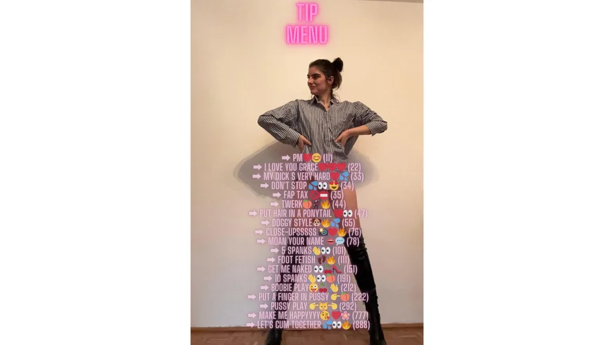 Ahegao, Camel Toe, Cock Rating, Erotic Dance, Fingering, Flashing, Foot Fetish, Masturbation, Spanking, Twerk, Cowgirl, Dildo or Vibrator, Dirty Talk, Doggy Style, Humiliation, Oil Show, Orgasm, Blowjob, Cuckold, Deepthroat, Jerk-off Instruction, Office, Role Play, Topless, 69 Position